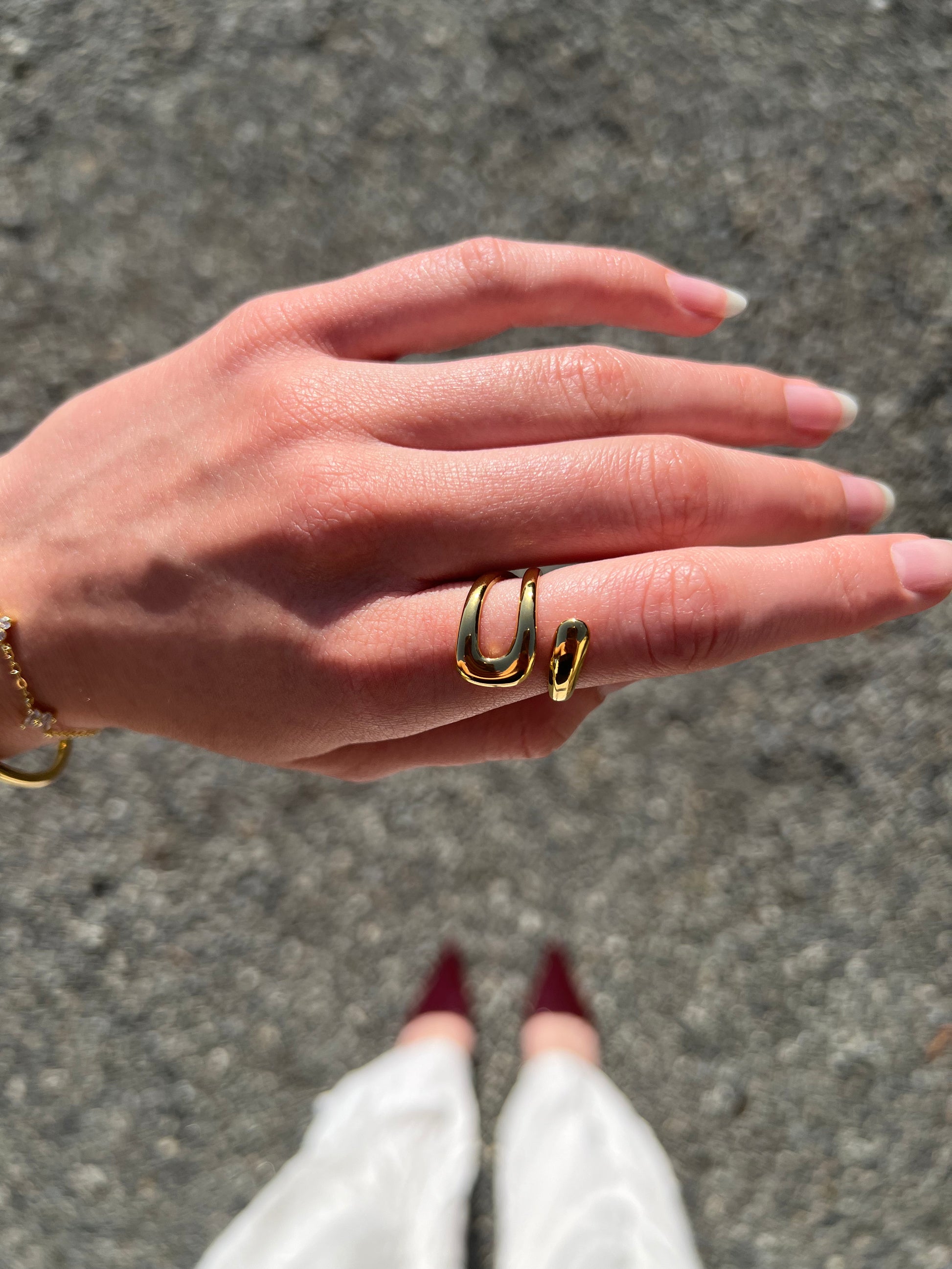 La jolie Bague Althéa en forme asymétrique est en acier inoxydable et ajustable.