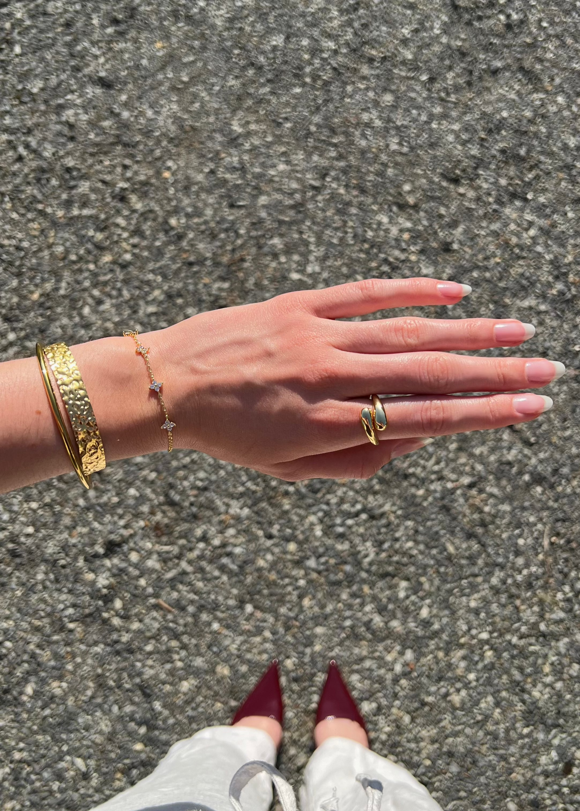 La bague Ana en acier inoxydable est ajustable. Elle se distingue par sa forme originale et son design moderne.