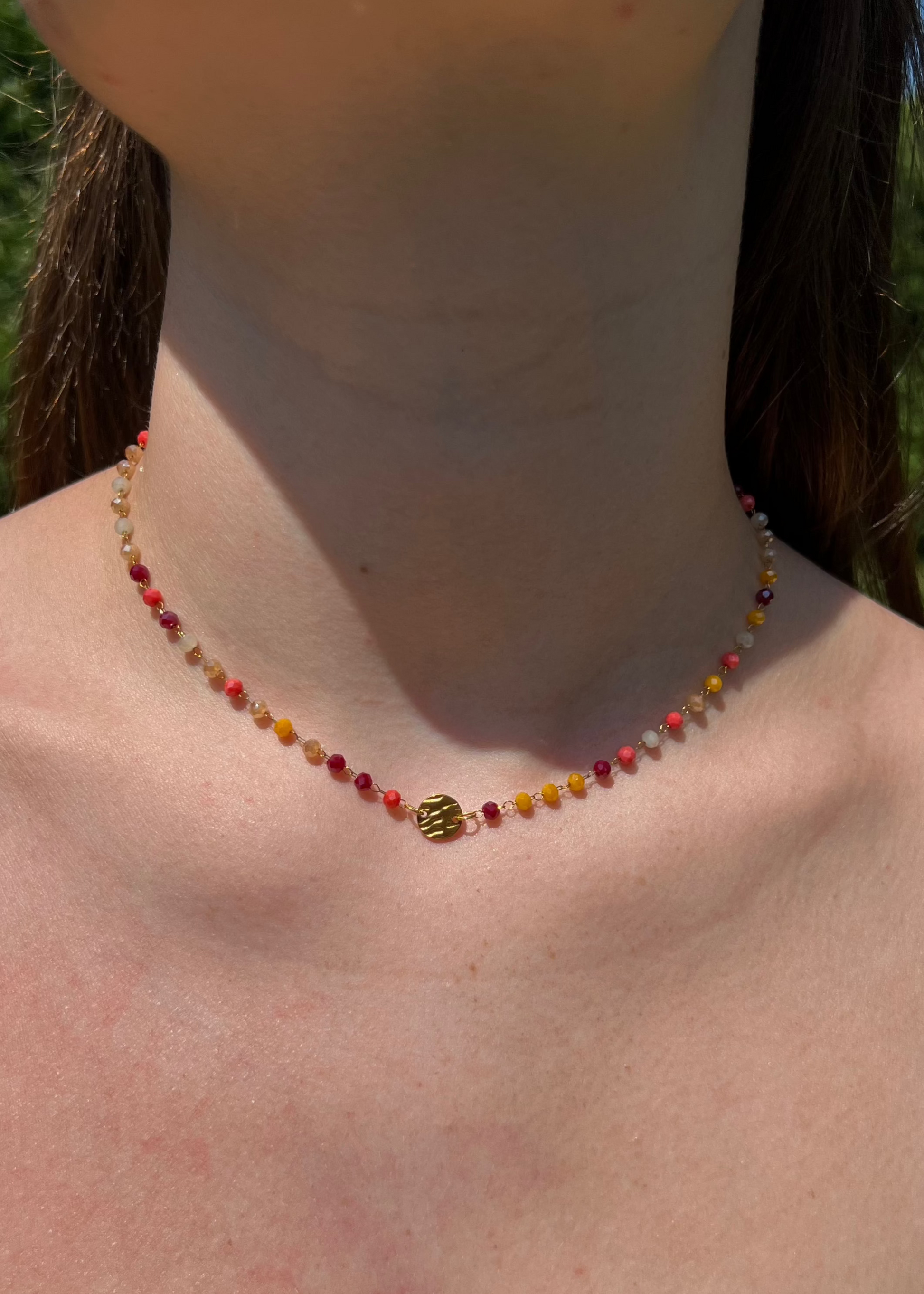 Ce joli Collier Emma en perles colorées est en acier inoxydable. Ce modèle existe également en bracelet.